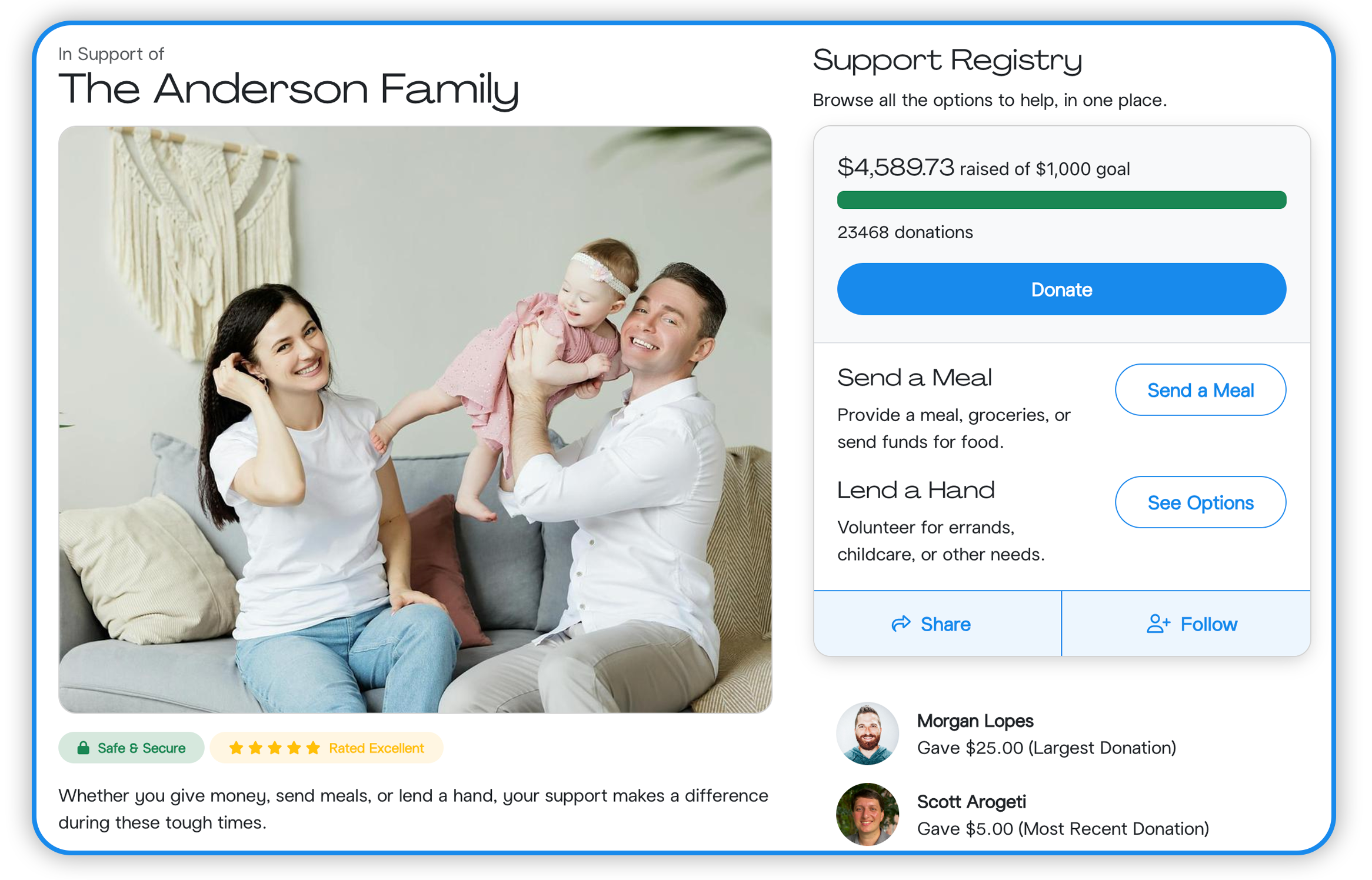 Families aren't restricted to just fundraising. SupportNow provides a single place for all of a family's support needs.